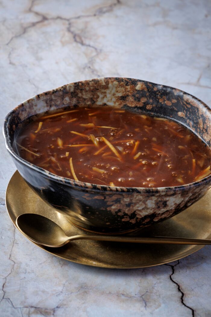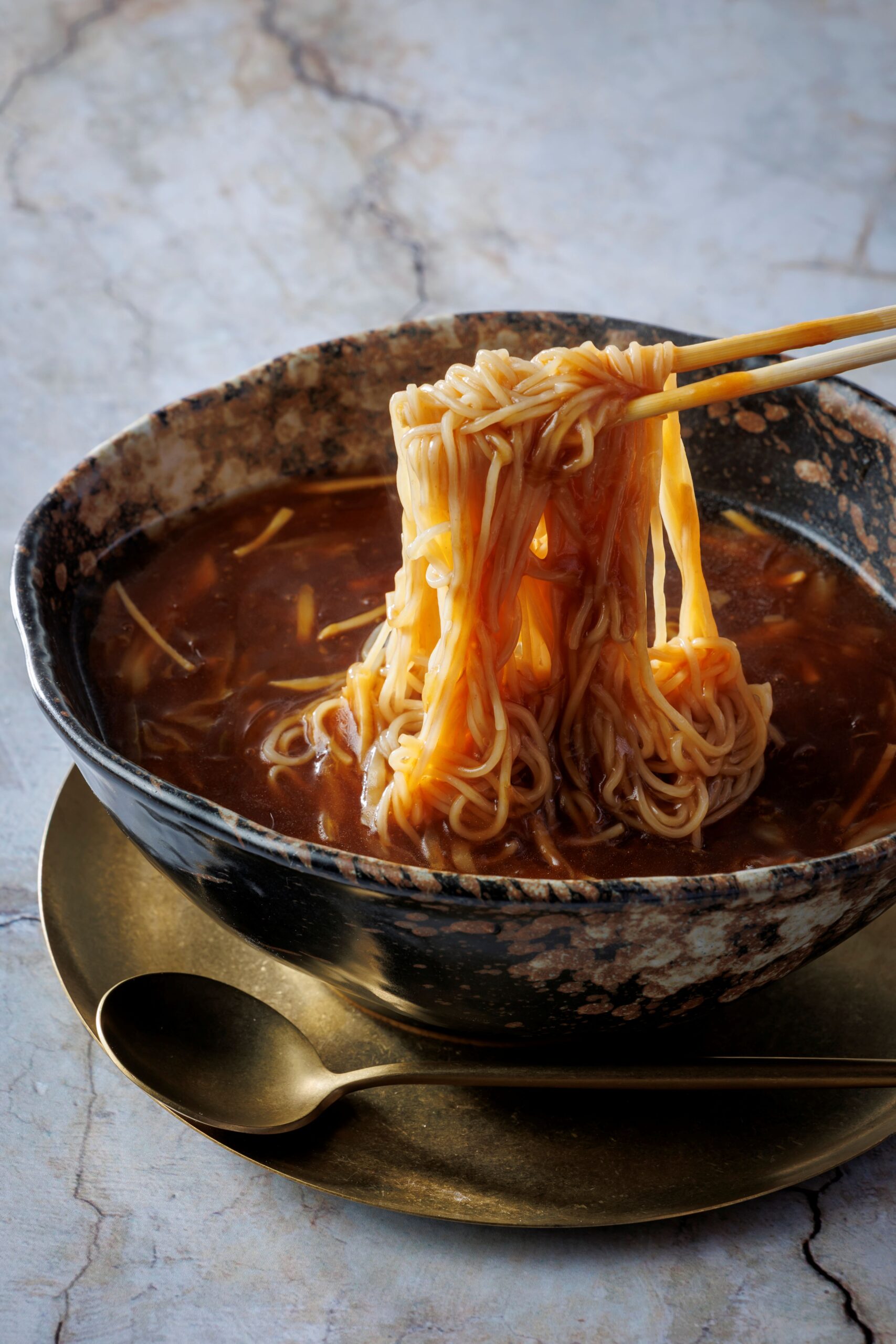 上質な気仙沼産フカヒレとサメのコラーゲンを一緒に煮込んだ餡掛けそば。