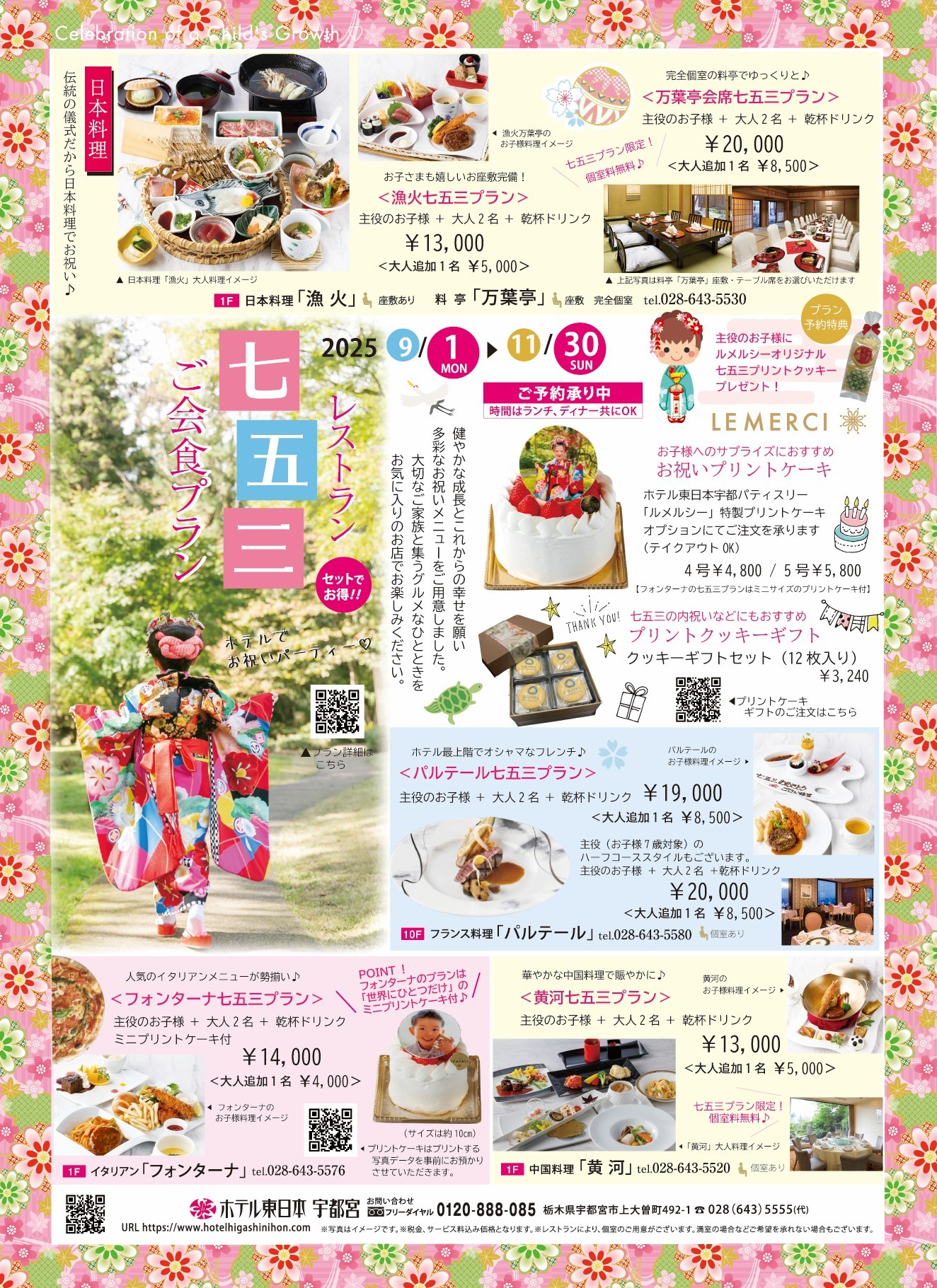 2025年のレストラン七五三会食プランは、イタリアン・中国料理・日本料理・フランス料理から選べるセットプランが登場!