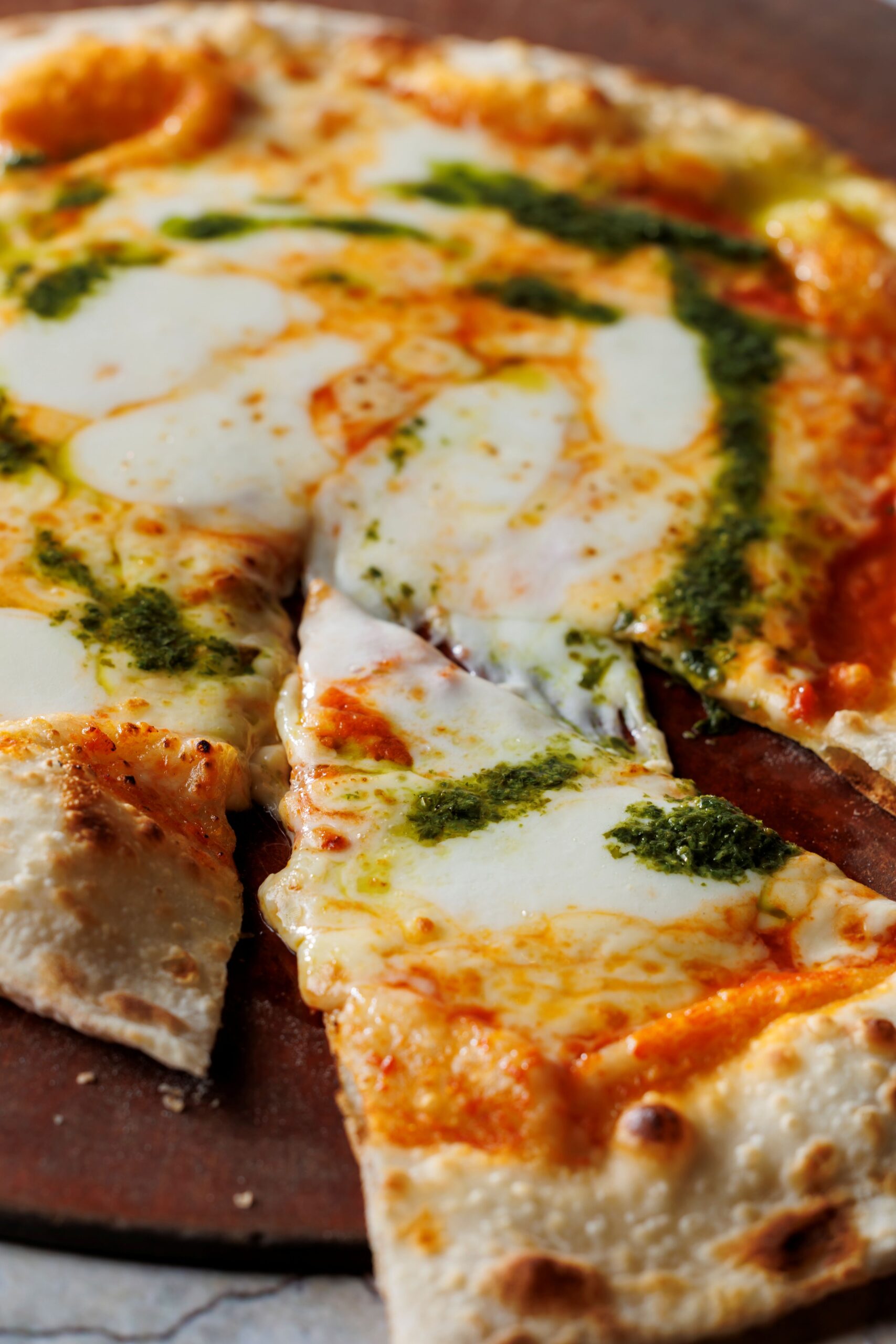 ▲↑店内の窯で焼き上げる「マルゲリータピッツア」