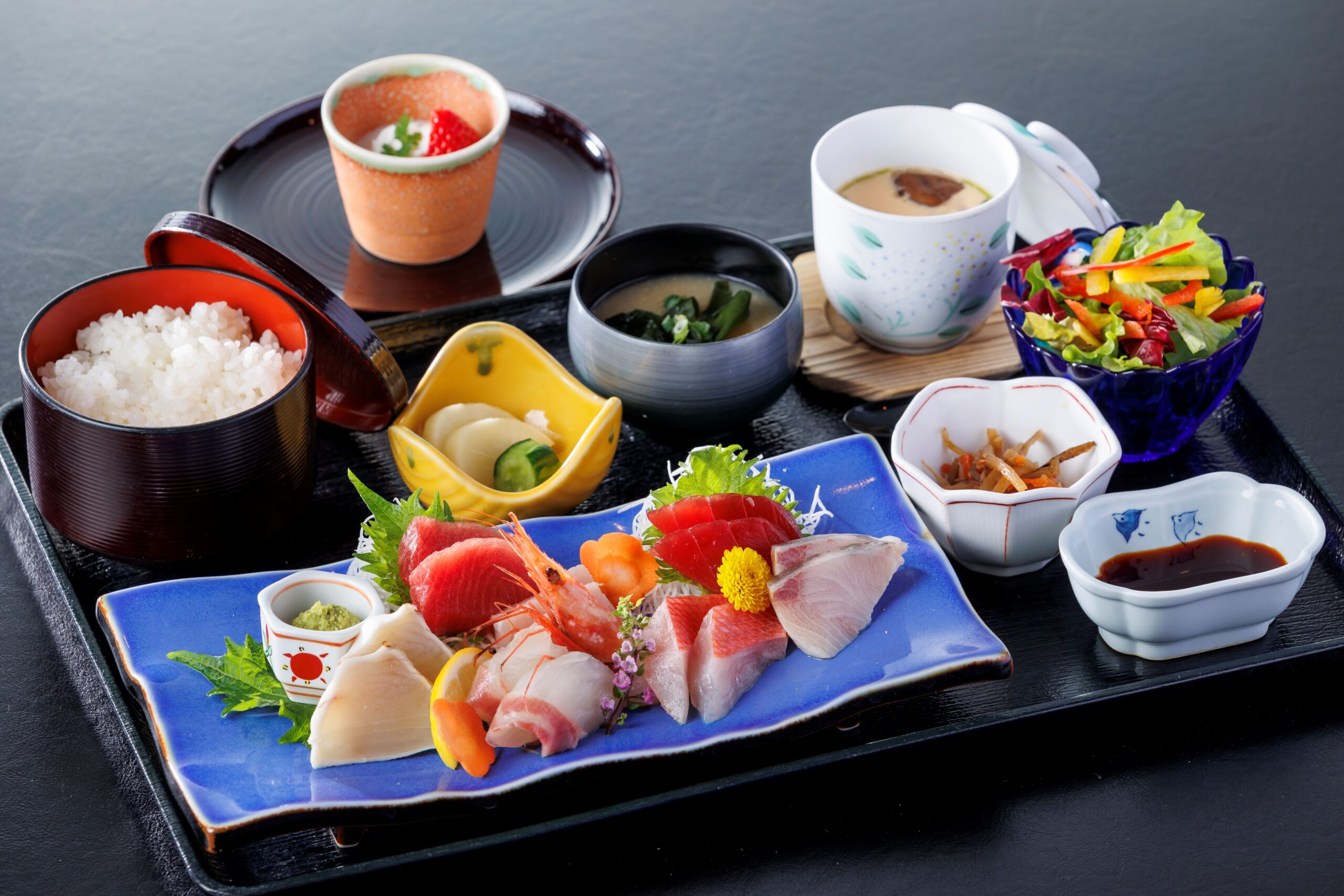 ・小鉢 ・茶碗蒸し ・香の物 ・サラダ ・味噌汁 ・栃木県産米