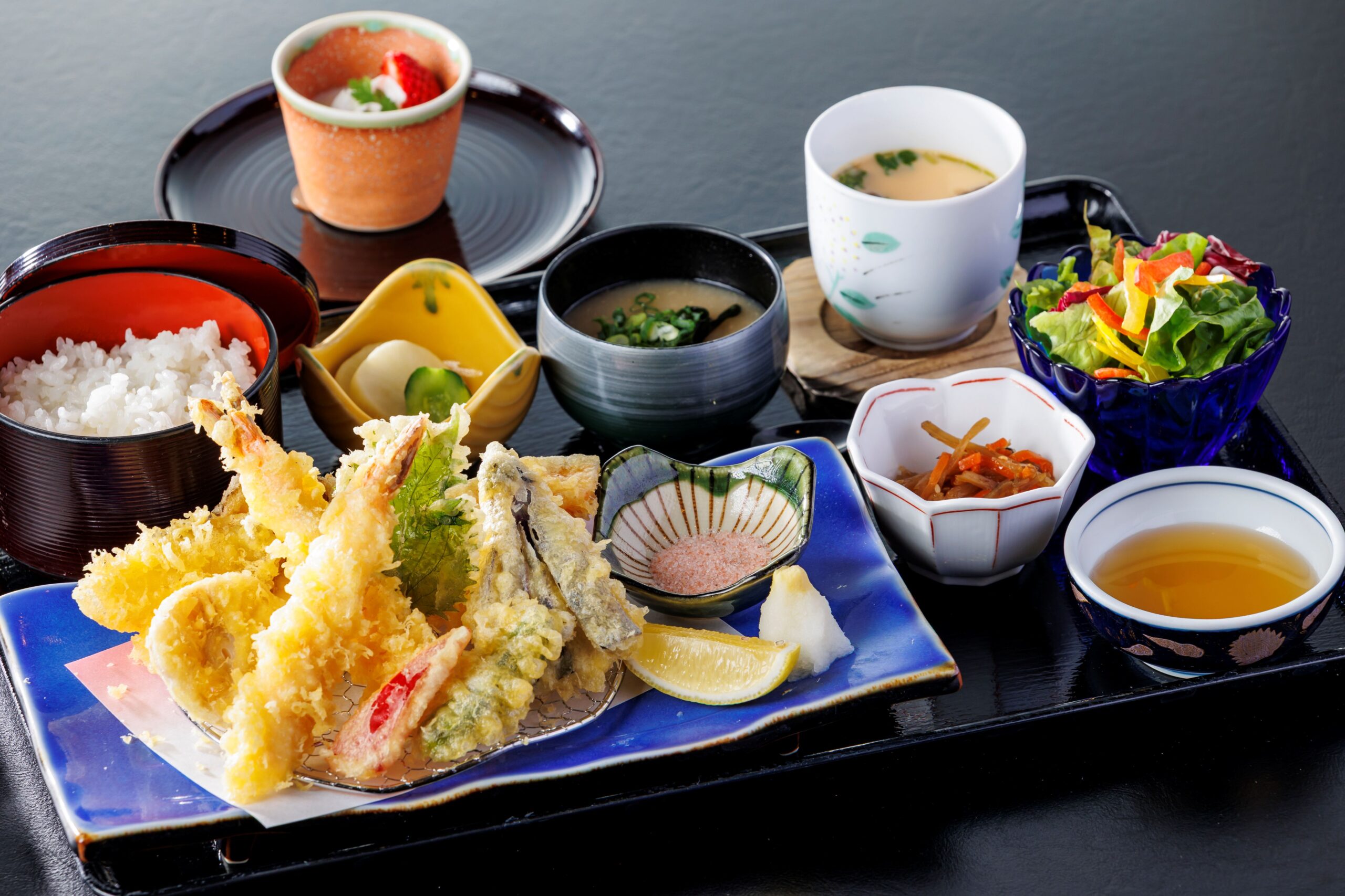 ↓日本料理「漁火」天麩羅御膳 ¥3,200(税・サービス料込¥3,520)