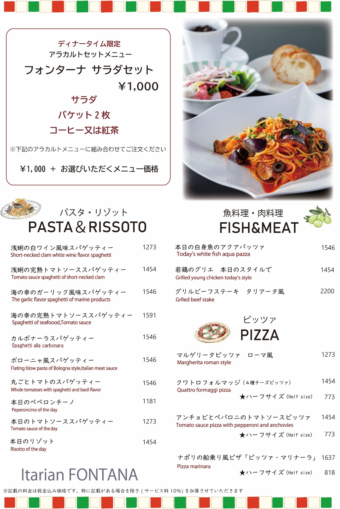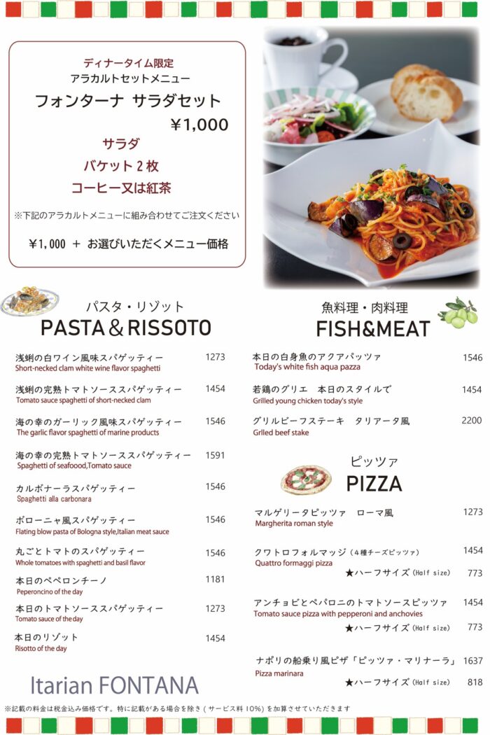 ↓イタリアン「フォンターナ」アラカルトセットメニュー ¥2,100~