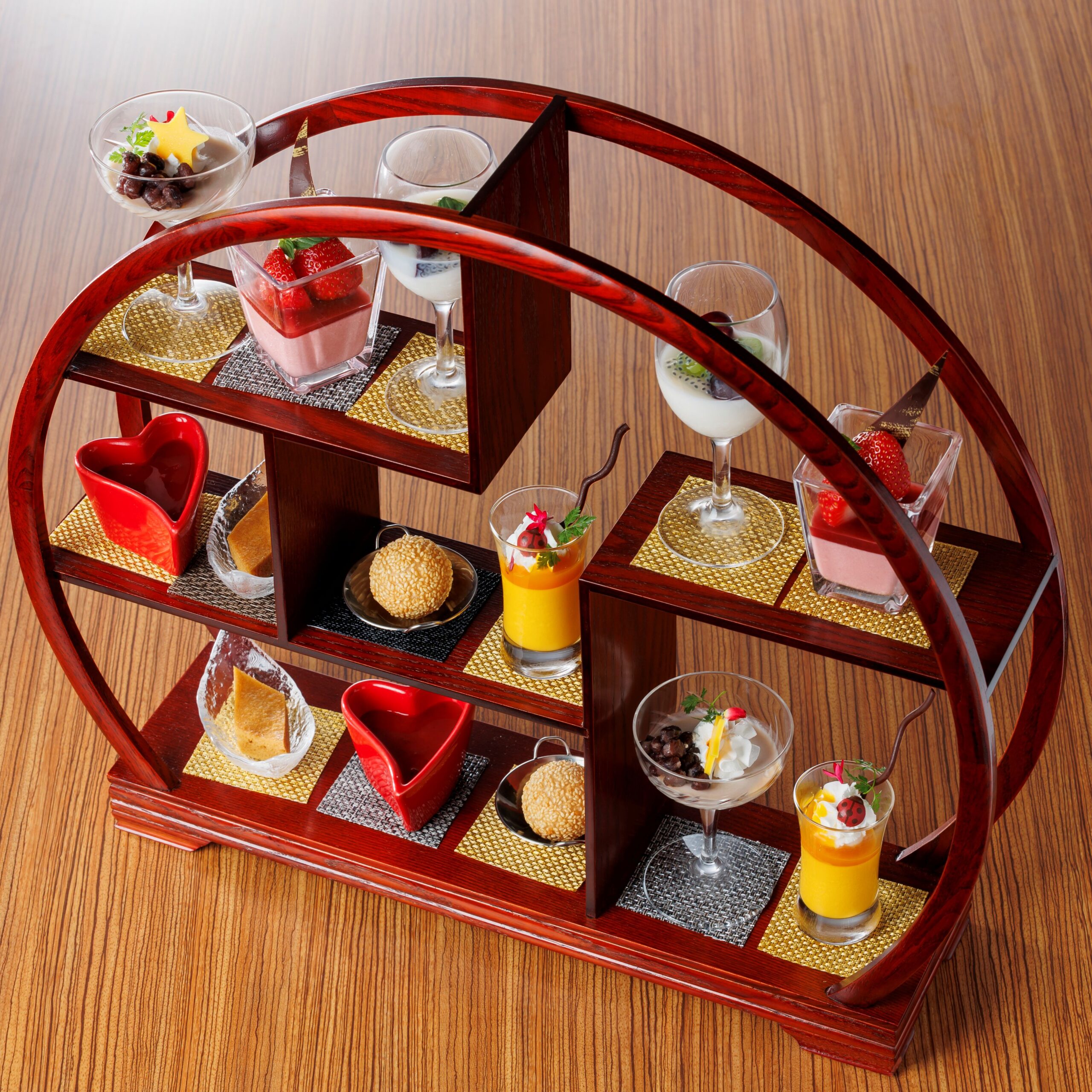 ・香港式縁台に飾ったアジアンスイーツセレクション